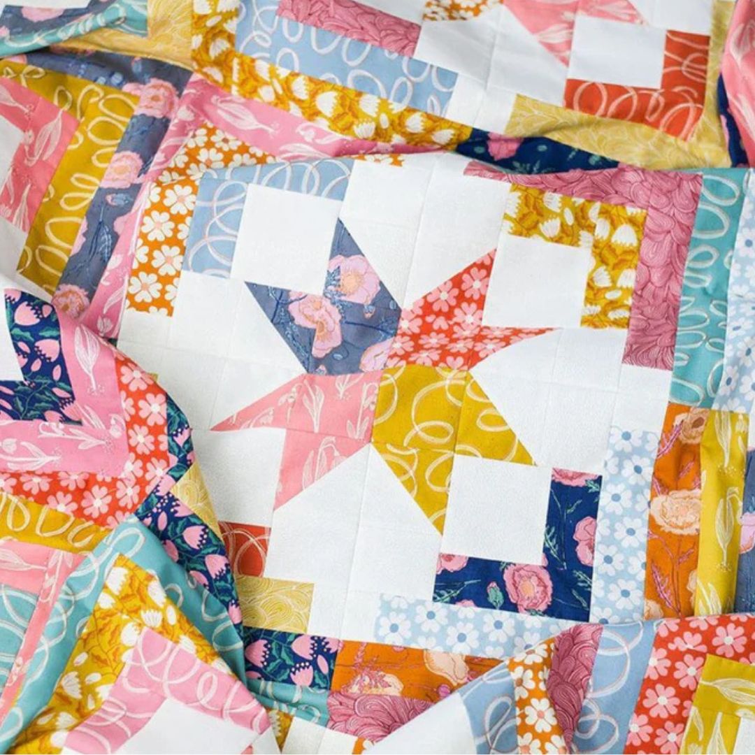 Cozy Cabin is a fat quarter friendly pattern that combines classic log cabin and star elements to create a modern design. Easily adaptable for use with scraps, Cozy Cabin is sure to become your new favorite quilt!